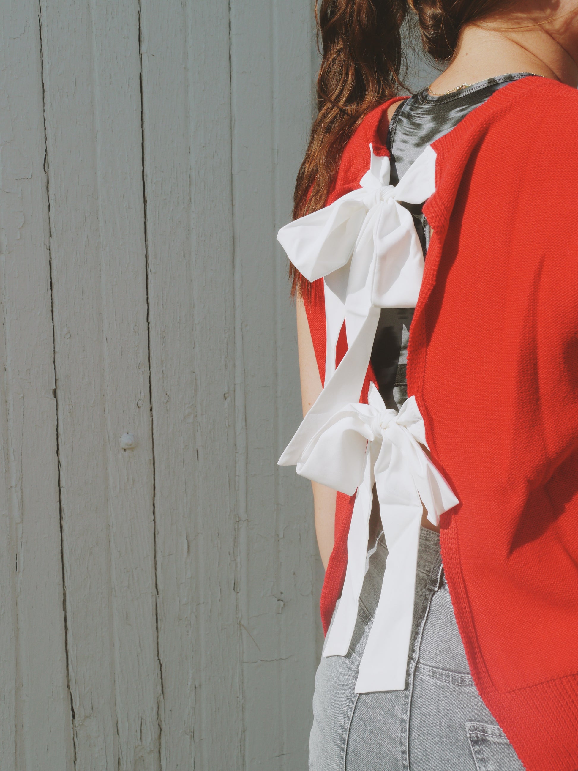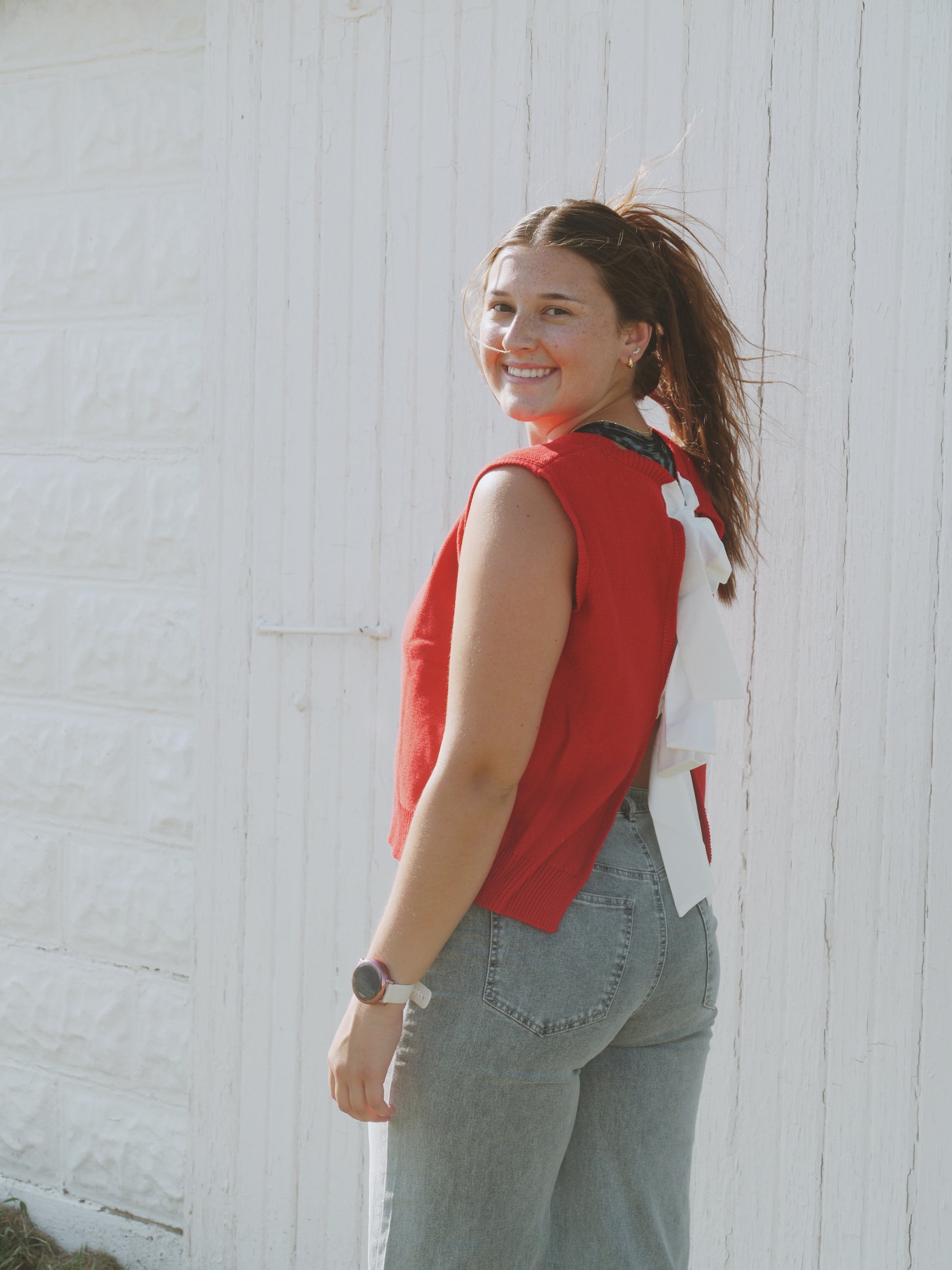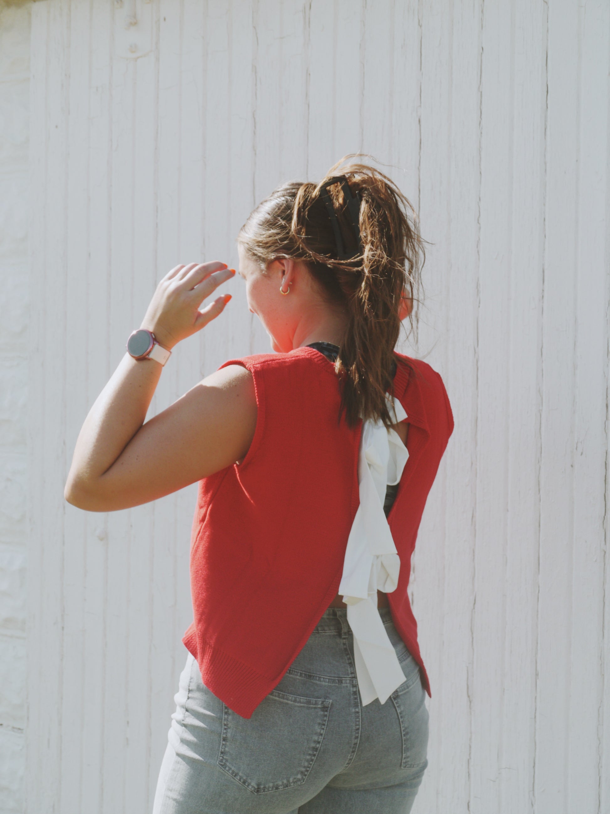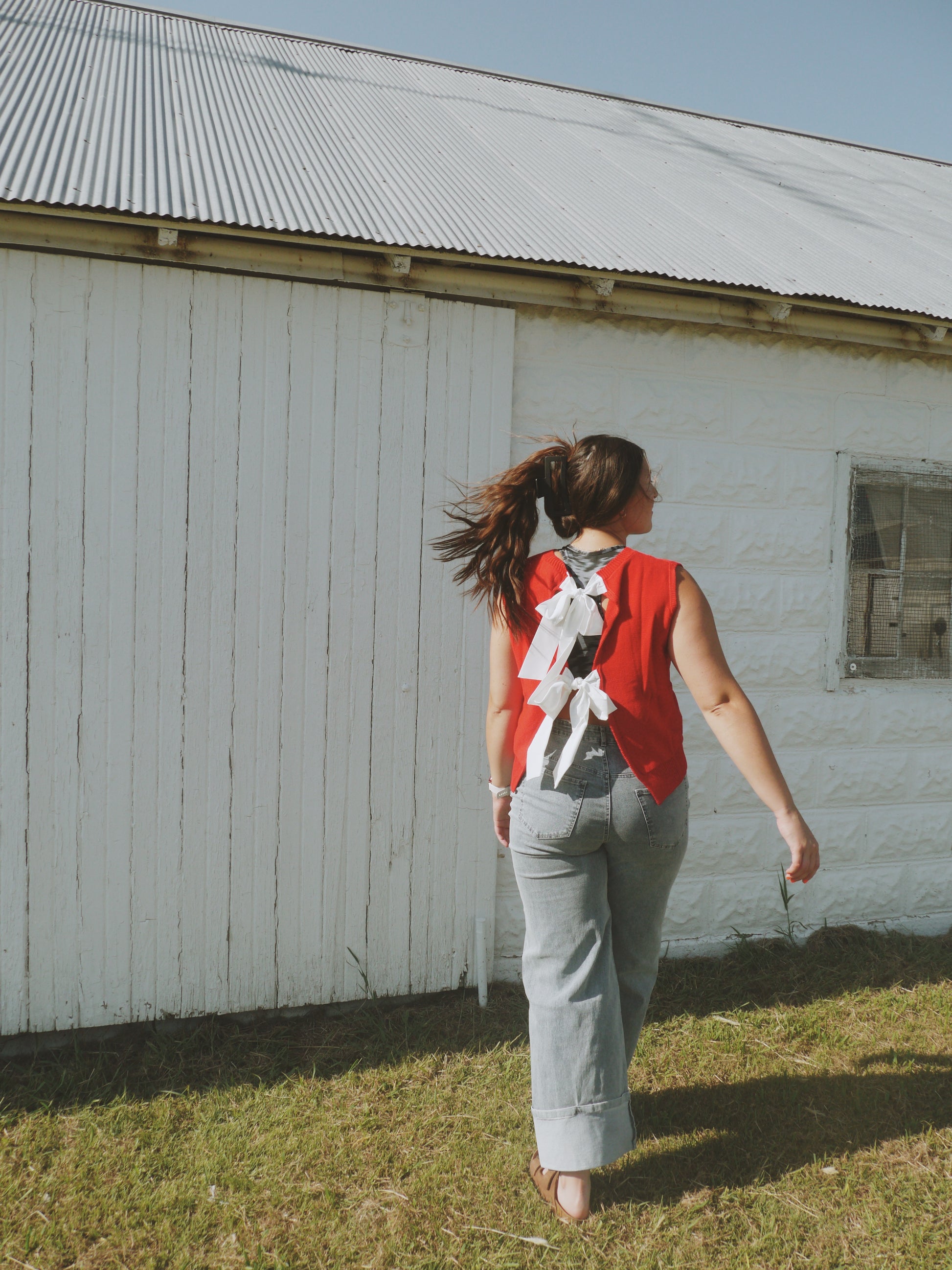 Get ready to have some fun in the Cherry Lane Top! This vibrant red top features playful white bows on the back, adding a touch of cuteness and quirkiness. Perfect for a casual day out, this top will make you stand out with its unique and fun design.