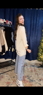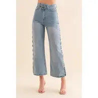 The Pearle Pants are a stunning fusion of classic denim with modern elegance. Crafted with meticulous attention to detail, the mid-rise waistband features an asymmetrical design, following the latest trend in denim fashion while flattering your silhouette. The straight leg style offers a timeless look that pairs effortlessly with any outfit. In addition, delicate pearls adorning the outer sides, adding a touch of luxury to your everyday wardrobe.